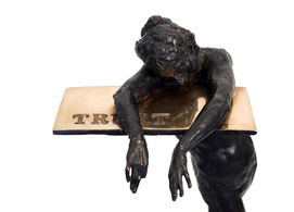 "Everyone would probably agree: Art is not obligated to follow reason," reflects Weisman. "In fact, some would assert that art gains authority when its source is not reason; when it 'comes from the heart' or other clichés that assume an emotional, political, or illogical but provoking source for the art. This bronze sculpture asks that we experience art outside of reason and outside the cliché of emotions; that we not 'outsource art' to reason and emotions but experience art as an origin. My sculptural attempts, from maquette to over life size human figures composed in a compassionate naturalistic approach, ask us to abandon our preconceptions of space and gravity. But explanation is a pale shadow of the art experience.